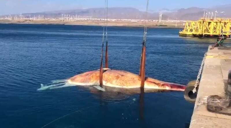 Varios agentes del Seprona de la Comandancia de la Guardia Civil junto a Juan Calabuig, veterinario del Centro de Recuperación de Fauna Silvestre del Cabildo de Gran Canaria, han sacado a la ballena y la han trasladado al vertedero de Juan Grande, según publica Canarias7..