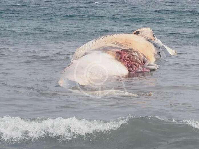 Se trata de un rorcual común de unos 15 metros que amaneció muerta y varada en la playa de Telde.