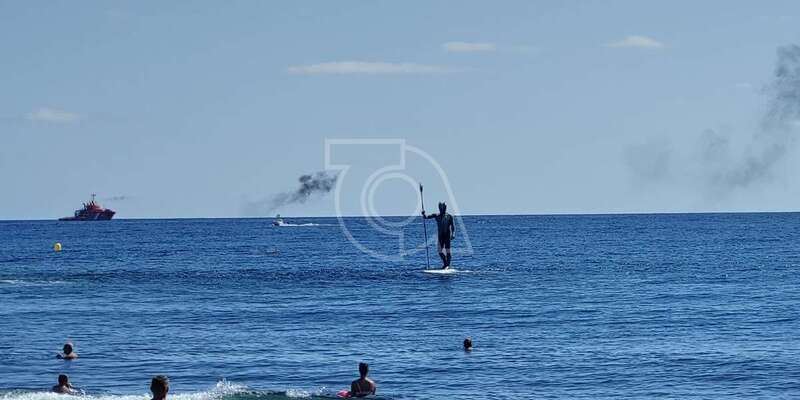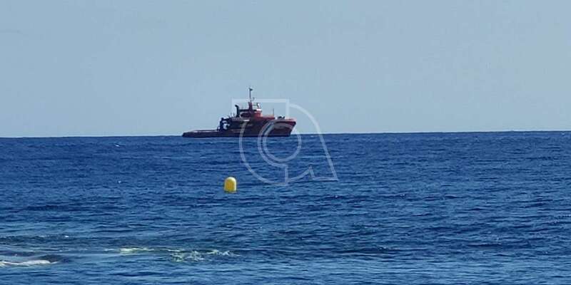 En las aguas situadas frente al CC Las Terrazas hay actuando desde primera hora de la mañana dos embarcaciones de Salvamento Marítimo tratando de disipar el vertido y un avión de este servicio ha sobrevolado el lugar por donde se extiende la mancha.