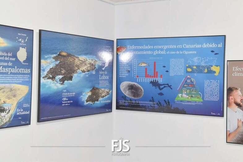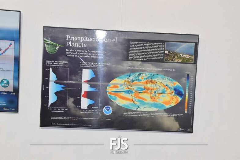 La propuesta está integrada por 42 paneles de gran tamaño que hacen un recorrido de los efectos causantes del cambio climático en el planeta, aunque poniendo el foco en el contexto local donde las consecuencias ya están siendo percibidas a simple vista y con incuestionables y dañinas consecuencias para el medio natural de las islas.
