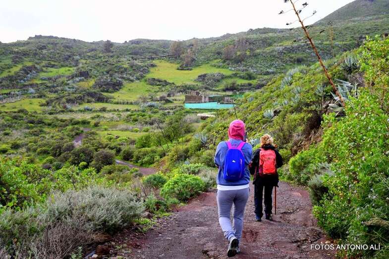 En total, un recorrido de unos 15 kilómetros que atraviesa esta zona de volcanes cuaternarios con una vegetación cambiante con predominio de acebuches y palmerales en los cauces de los barrancos.