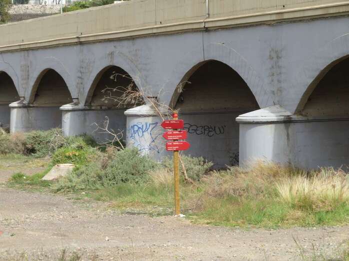 Precisamente, en este recorrido de 2,5 kilómetros se instalaba recientemente un pavimento estabilizante, -compuesto por tierra del entorno y un ligante- para allanar y hacer accesible este espacio al mayor número de personas posible. Además, en esta zona se ubica un Área de Descanso junto al Puente de los Siete Ojos, en el Barranco Real. Se trata de un espacio de 1.305 metros cuadrados, aproximadamente, donde existe una arboleda compuesta principalmente por eucaliptos, que se ha acondicionado con pérgolas, mesas y sillas de madera. Además, el lugar cuenta con un servicio de mantenimiento de bicicletas, así como un aparcamiento para estas.