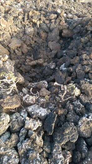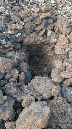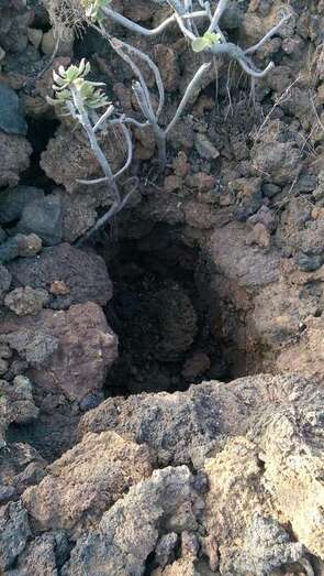 En primer lugar, en nuestro ascenso, nos sorprende la serie de pequeños socavones que superiores en número a la veintena de hoyos, se han abierto con la intención de vallar por completo el cráter. La fuerza de la naturaleza es tal que bejeques y veroles inician ya la colonización de estas oquedades.