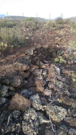 Es cierto que es deleznable el estado del lugar, pero si hubieran recorrido el centenar de metros que les restaba hasta la cima y observaran con detalle el yacimiento, constatarían que afortunadamente el malpaís donde se asienta la necrópolis está limpio, nada hay en él de basuras y vertidos, si acaso y eso no supone un peligro para el yacimiento, los restos del cierre perimetral que, abandonado el interés en culminarlo, allí permanecen, por tramos, pues algunas zonas de la cúspide se encuentran exentas de vallas.