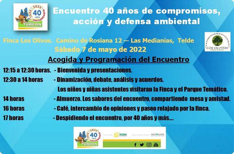 Para celebrar estas cuatro décadas, Turcón organizó un emotivo encuentro para “recuperar la cercanía, el debate y el análisis de la realidad ambiental de Canarias, en un ambiente distendido, con compañeros que no quisieron perderse una reunión donde nos acompañaron miembros fundadores del colectivo en su nacimiento, cuando eran el Aula de Ecología o Grupo Naturalista Turcón del Colegio Esteban Navarro Sánchez”.