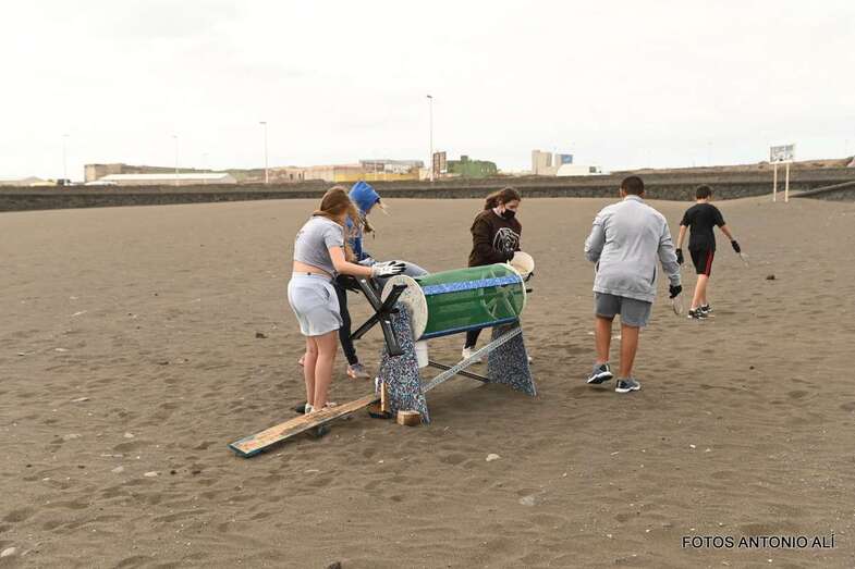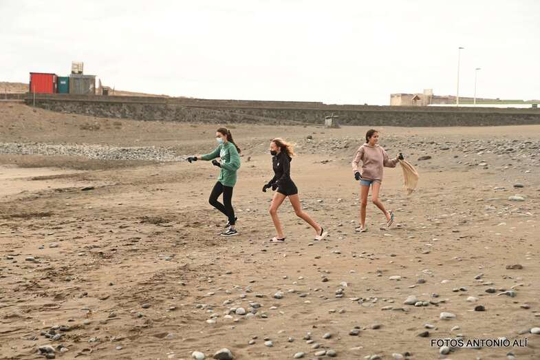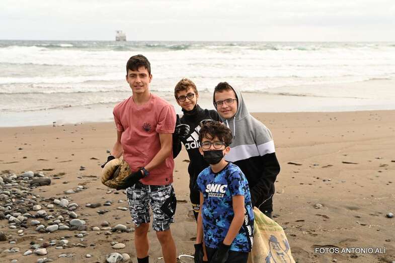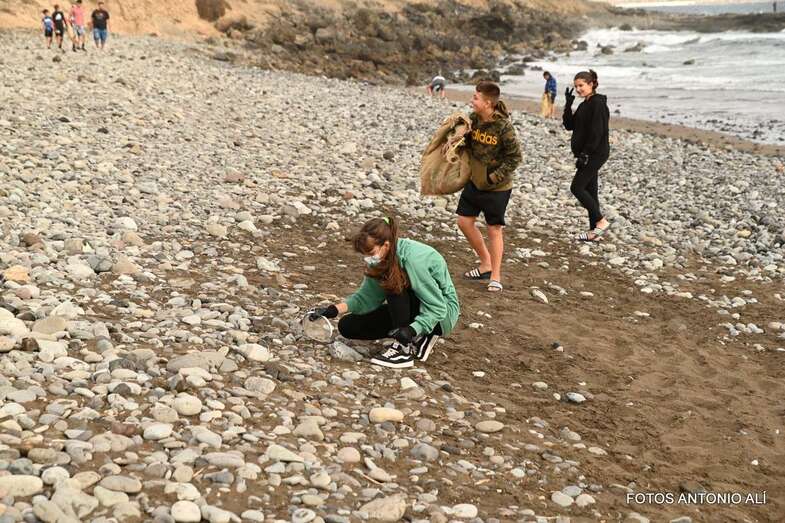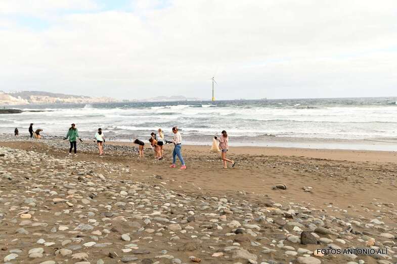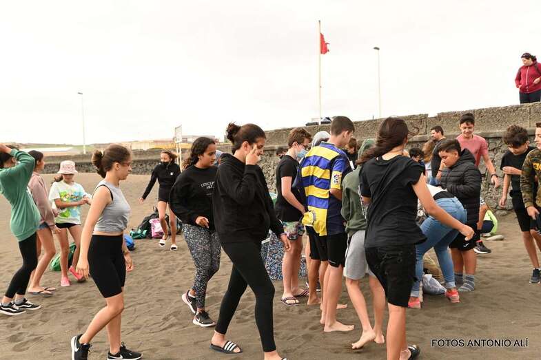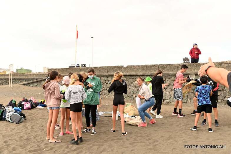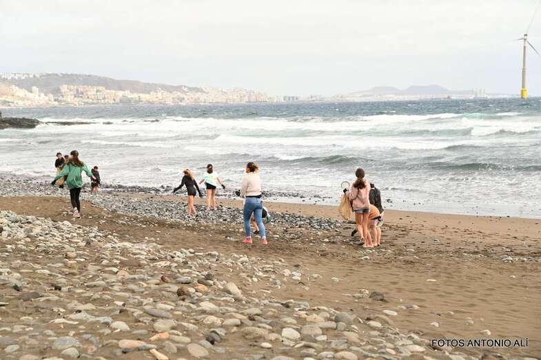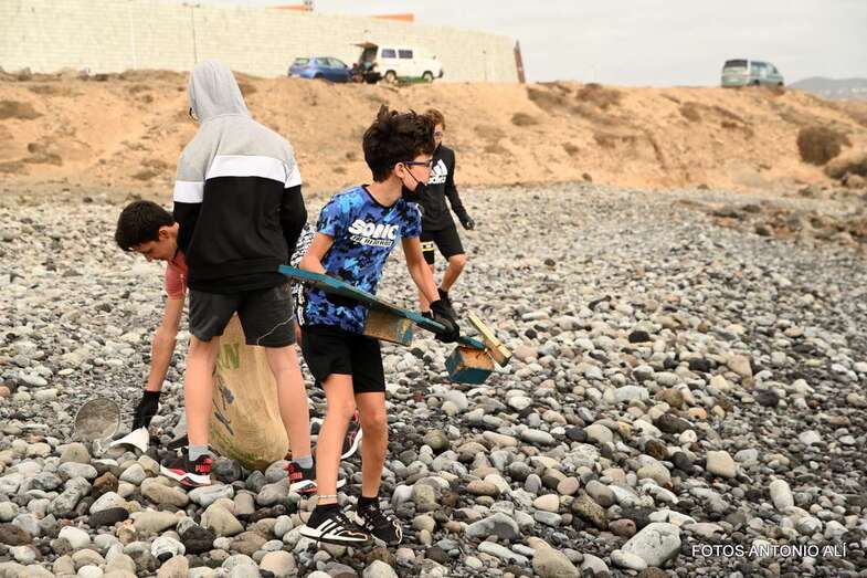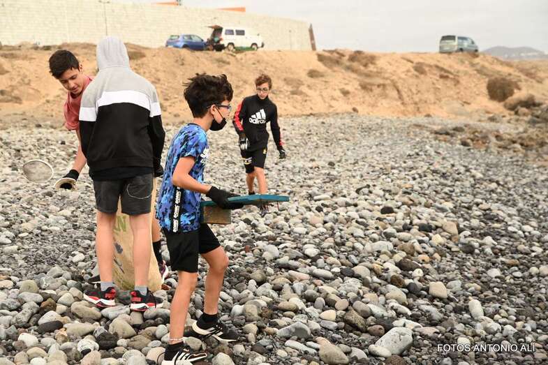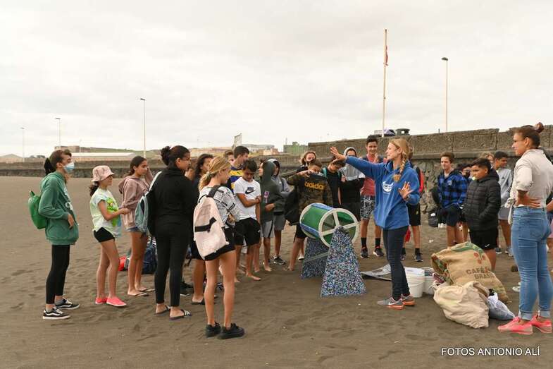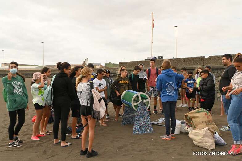 Alumnos de 1º de la ESO del IES El Calero de Telde llevaron a cabo este lunes junto a la ONG Oceans 4 Life una limpieza de plásticos y otros residuos en la playa de La Restinga, en la costa de Jinámar.
