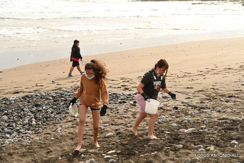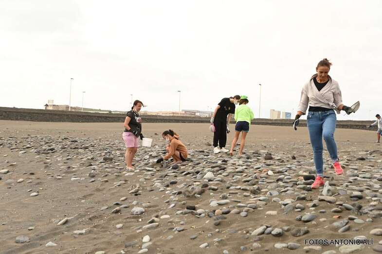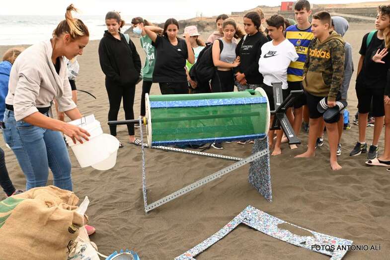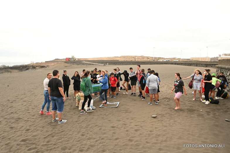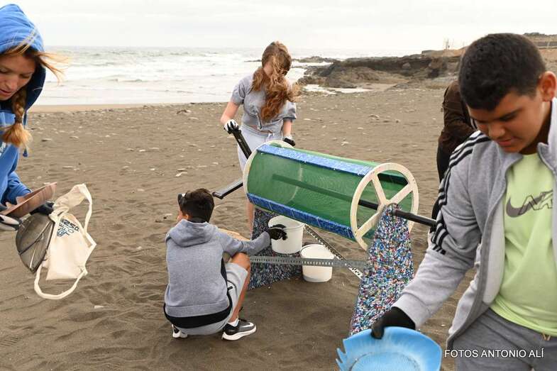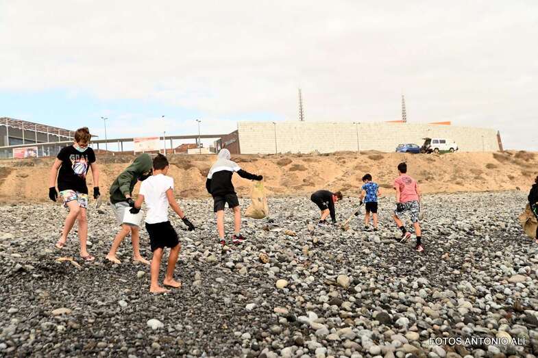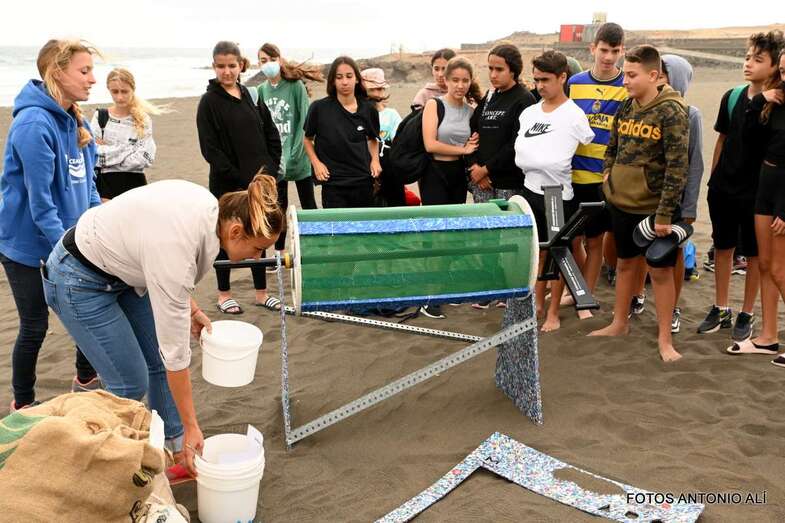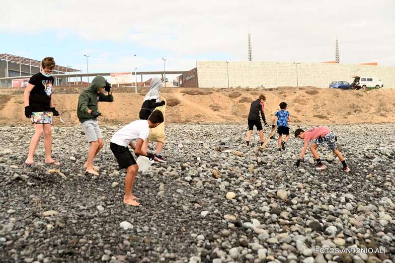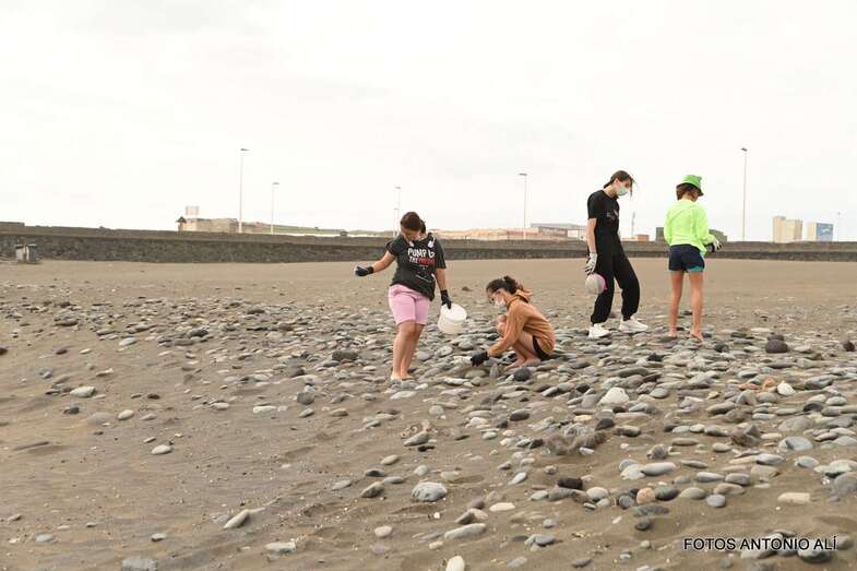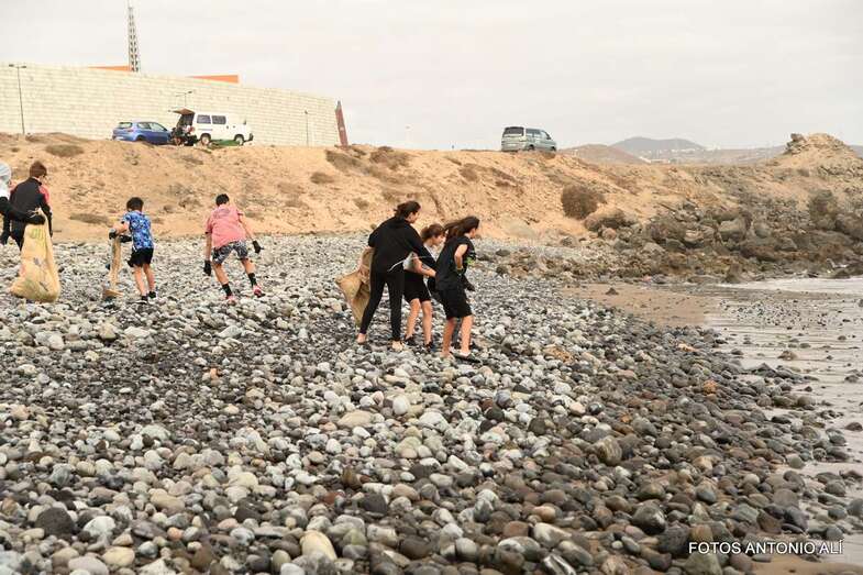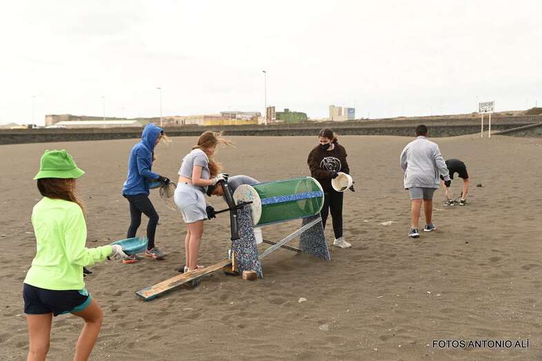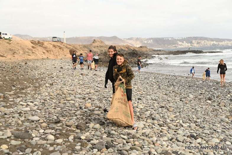 Alumnos de 1º de la ESO del IES El Calero de Telde llevaron a cabo este lunes junto a la ONG Oceans 4 Life una limpieza de plásticos y otros residuos en la playa de La Restinga, en la costa de Jinámar.
