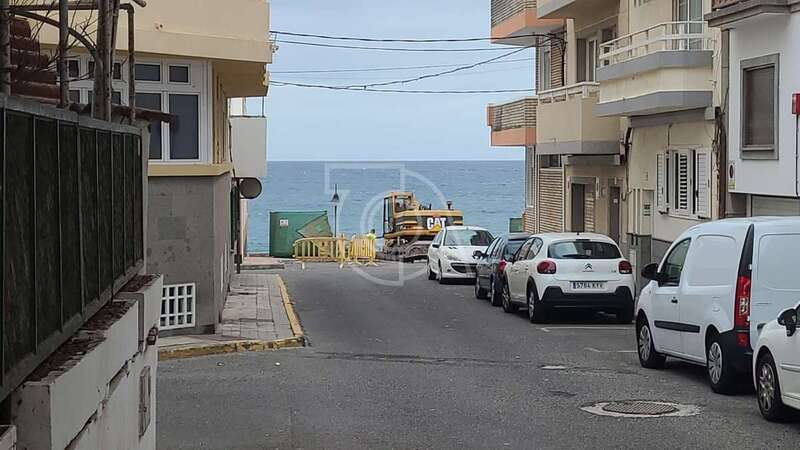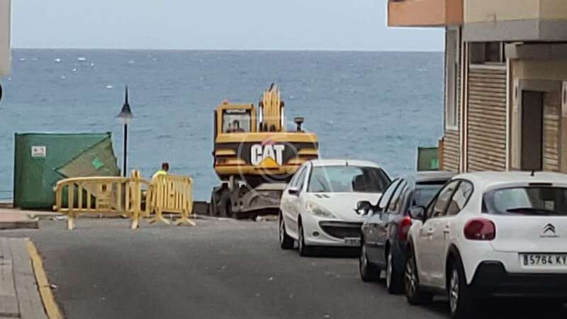 Maquinaria pesada comenzó a trabajar en la zona donde se ha producido una gran oquedad en la avenida debido a su hundimiento por la erosión marina.