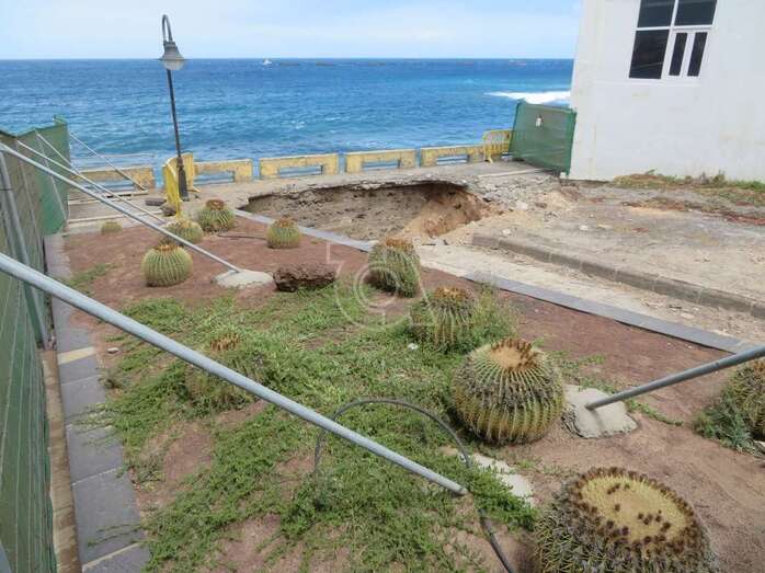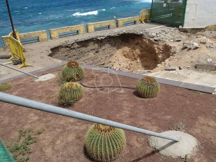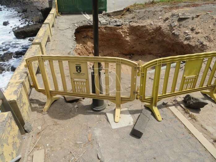 Las obras de reparación del peligroso socavón emplazado en el tramo sur del paseo costero de Salinetas arrancaron este miércoles por la mañana, tal y como se había anunciado previamente.