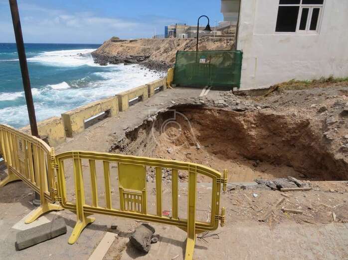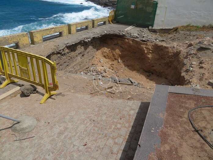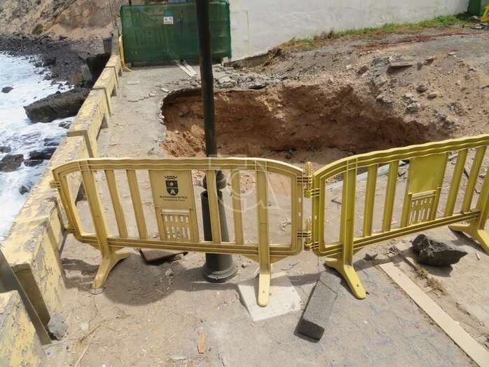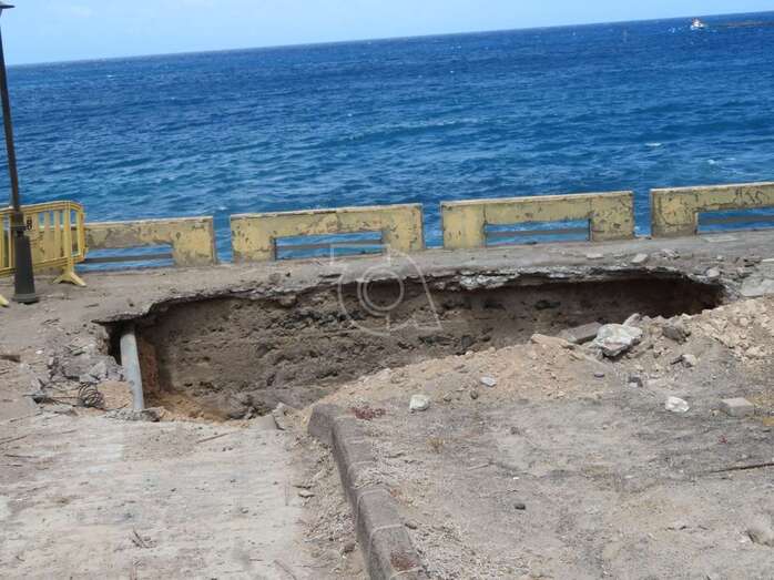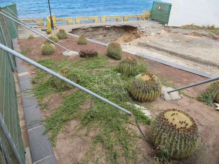 La reparación del inmenso agujero que la erosión del mar ha provocado en el paseo de Salinetas no solo contempla el rellenado de la estructura, hoy ahuecada, sino también la construcción de un elemento que lo proteja de ahora en adelante.