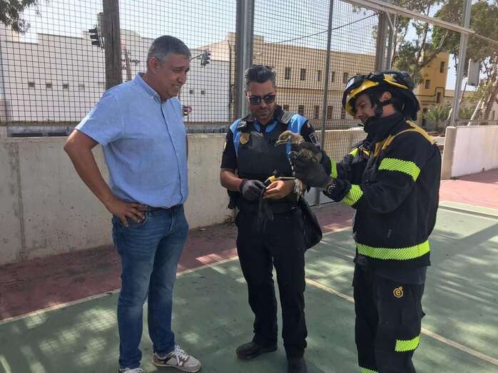 En un primer momento fue el servicio municipal de recogida de animales abandonados el que intentó auxiliar al ave, que se había introducido en una arqueta, más concretamente en un tubo de desagüe de pluviales del cementerio de San Gregorio que desemboca en la cancha deportiva anexa. Pero ante la imposibilidad de llegar hasta él, se activó al Consorcio de Emergencias de Gran Canaria y a la Policía Local de Telde.