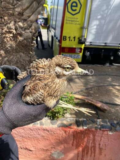 Los bomberos de Telde llevaron a cabo este miércoles un rescate animal, el de un ave, un ejemplar de alcaraván, que se encontrataba atrapado en un arqueta en el barrio de Lomo Cementerio.