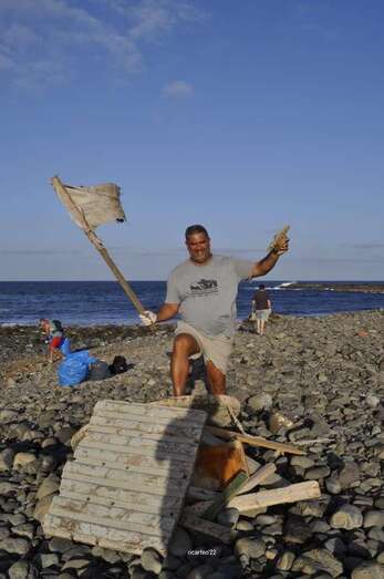 Un grupo de 20 personas respondió días atrás a la llamada del colectivo Foto Costas Limpias para llevar a cabo una campaña de limpieza de la playa de La Restinga, en la costa jinamera de Telde próxima al Centro Comercial de Las Terrazas.