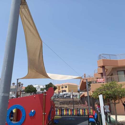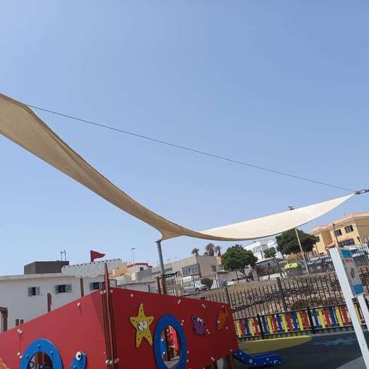 El edil del área, Álvaro Monzón, explica que los técnicos desmontarán este elemento que da sombra a este espacio de ocio infantil y analizarán los motivos por los que se ha descosido uno de los lados con el fin de resolverlos y garantizar la seguridad de los usuarios.