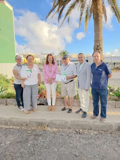 La alcaldesa de Telde, Carmen Hernández, y el edil de Parques y Jardines, Álvaro Monzón, entregaron este jueves las credenciales y diplomas del proyecto Barrios Verdes a Micaela Martín y Adrián Alonso, dos vecinos del sector de La Barranquera que han creado un jardín urbano y son los encargados de cuidarlo para embellecer el entorno.