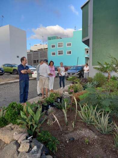 Hernández alabó el trabajo que han realizado los residentes para recuperar una parcela en desuso en la que han plantado varias especies de flora canaria, entre los que se encuentran tarajales, tajinastes, orobales y jazmín canario, entre muchas otras plantas.