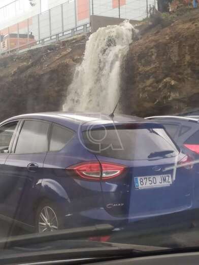 Última Hora: Las lluvias caídas en Telde provocan cascadas sobre la GC-1 e inundan el acceso a Tufia