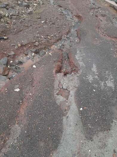 Los técnicos de Carreteras han estado valorando los daños.Actualmente hay unos 15 metros de firme que se hadesmoronado por las intensas lluvias, aunque se ha detectado que existe una franja de unos 130 metros afectada. La