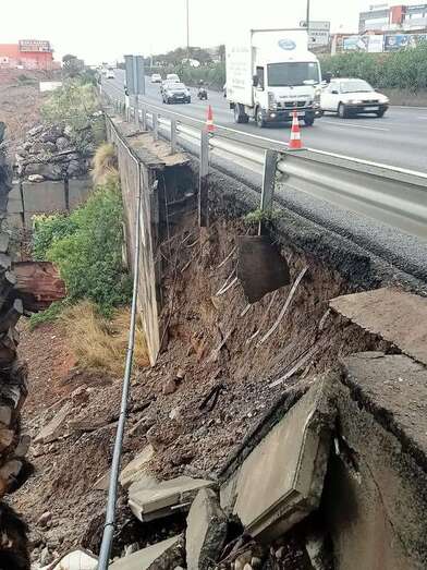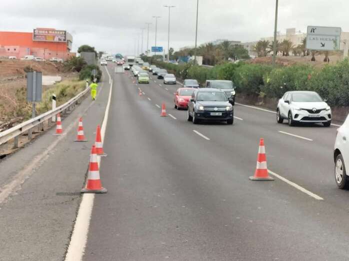 El desprendimiento del muro de contención en la GC-1, en dirección hacia la capital, a la altura de Las Huesas, con motivo de la tormenta Hermine de estos últimos días y que provocó el cierre ayer lunes por la tarde del carril derecho en el tramo comprendido entre los puntos kilométricos 11,750 y 10,600, está generando retenciones hacia la capital grancanaria.