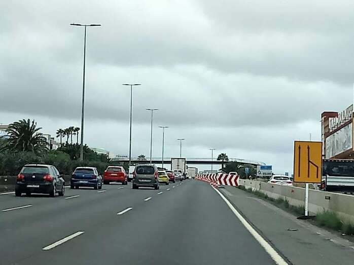 Colas en la GC-1, a su paso por Telde, por el desprendimiento de un muro de contención
