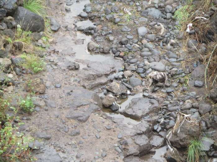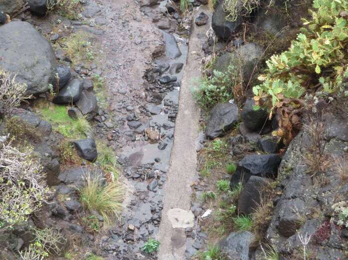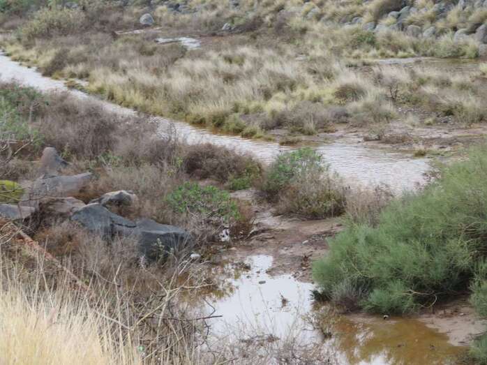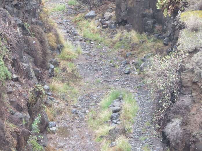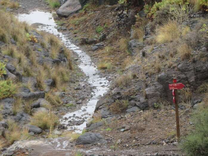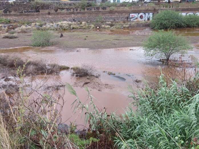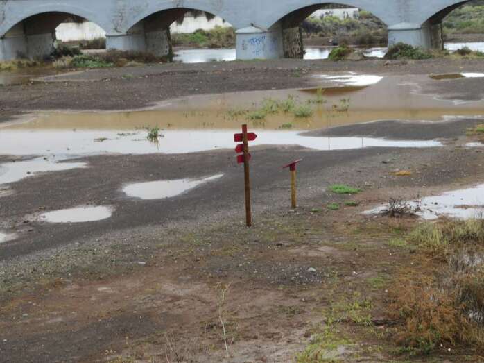 Algunos tramos del corredor, especialmente aquellos que pasan por los puntos en los que el cauce del Barranco Real de Telde es más angosto, el agua llenó de piedras y residuos el sendero y en otros casos se estancó creando charcos de diferentes dimensiones, según pudo comprobar in situ TELDEACTUALIDAD.