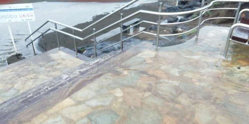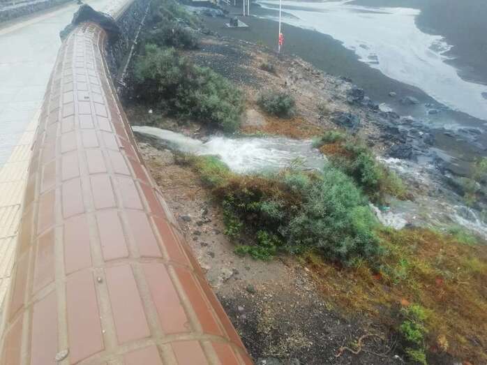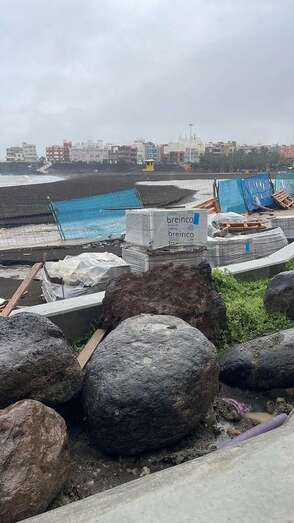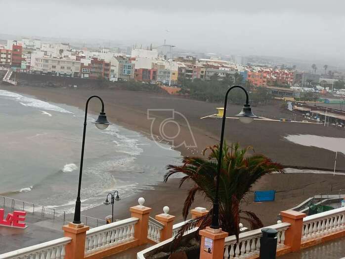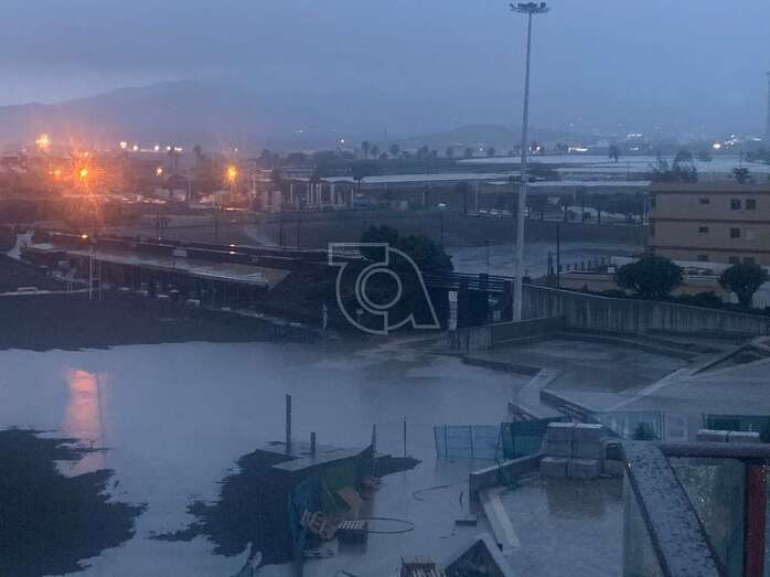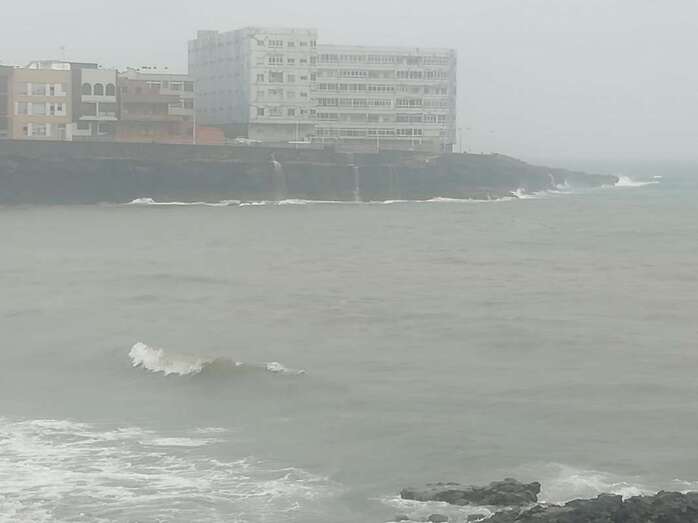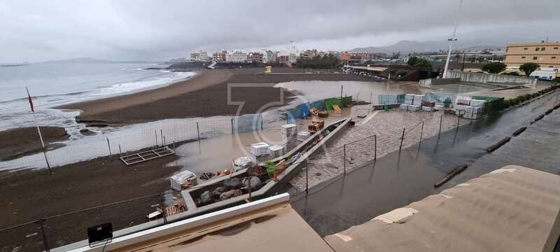 Sin embargo, a media mañana las incidencias fueron aumetando a medida que se mantenía la persistente lluvia. Así, en Melenara, el agua que corre por el barranquillo que desemboca en esta playa formó una gran charco a su llegada a la arena debido a que no se canalizó su salida como en otras ocasiones. Invadió un trozo de las obras de la nueva avenida.