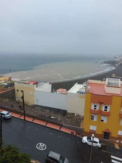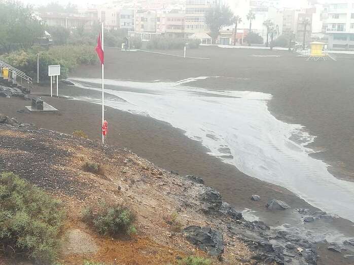 Pese a que en las redes sociales comenzaron a circular imágenes de la riada arrastrando varios vehiculos que estaban aparcados en pendiente en la vía de acceso a los apartamentos del antiguo hotel Bahía Mar y a la playa de San Borondón, la Policía Local ha aclarado que esas imágenes no corresponden al episodio de lluvia de este domingo. En la zona sólo se han producido algunos desprendimientos del talud de rocas volcánicas.