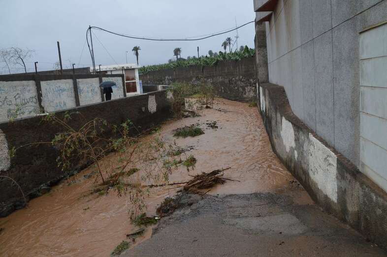 Sobre las 14.30 horas, el Ayuntamiento informaba del cierre al tráfico la calle Eolo, en La Higuera Canaria, por el hundimiento de uno de sus tramos a consecuencia de la erosión por la lluvia. El corte ha sido señalizado por Servicios Municipales. Por su parte, vecinos alertaban de desprendimientos de muros en la calle de Minote, en Caserones Bajos. Tambien hubo desprendimientos por la mañana en la carretera de Cuatro Puertas.