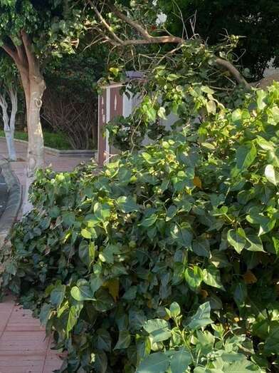 "Nadie hace nada. Los vecinos pedimos que vengan a retirar la rama, así como a fumigar y limpiar los parterres y jardines de la urbanización, urbanización la cual tienen abandonada. Se pide que como el Ayuntamiento de Telde es rápido para cobrar impuestos a sus ciudadanos sea igual de rápido para atender a estos", reprocha la vecina Yesenia Acosta.
