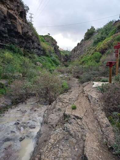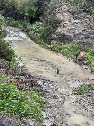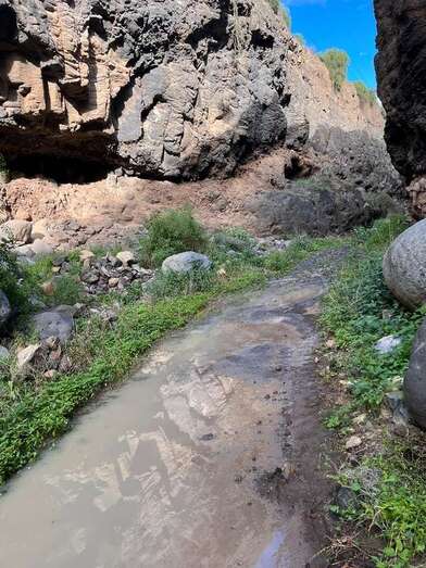 Usuarios del Corredor Paisajístico de Telde denuncian un vertido de aguas fecales que emana a la altura de la Ermita de San José de Las Longueras y que está contaminando esta vía que discurre por el cauce del Barranco Real.