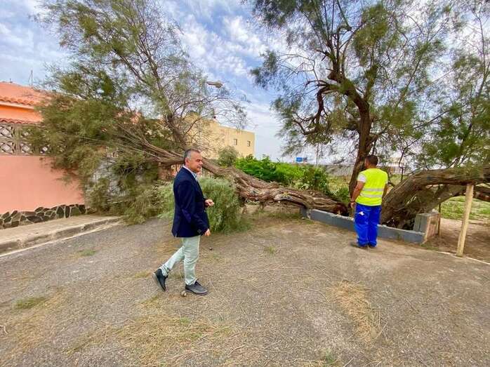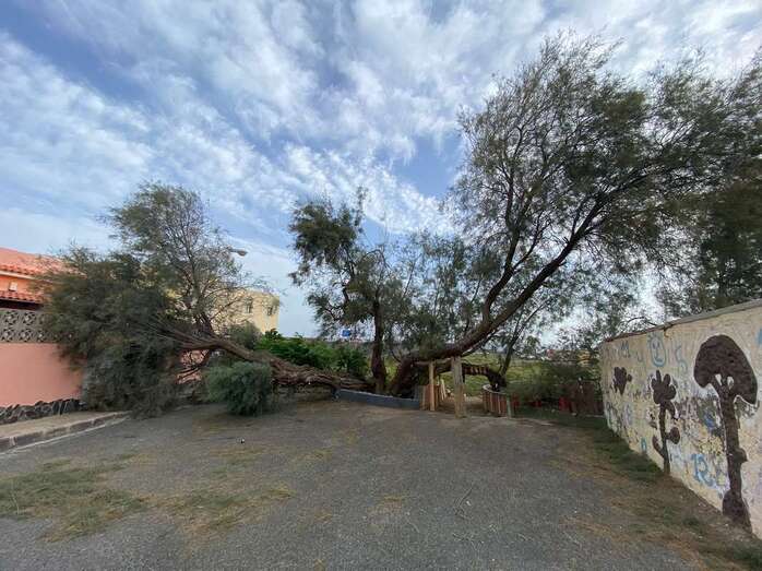 El viento derriba un árbol centenario en La Pardilla (Telde)