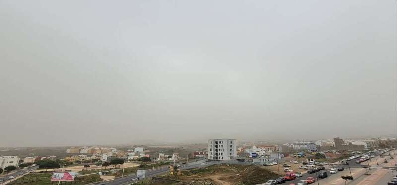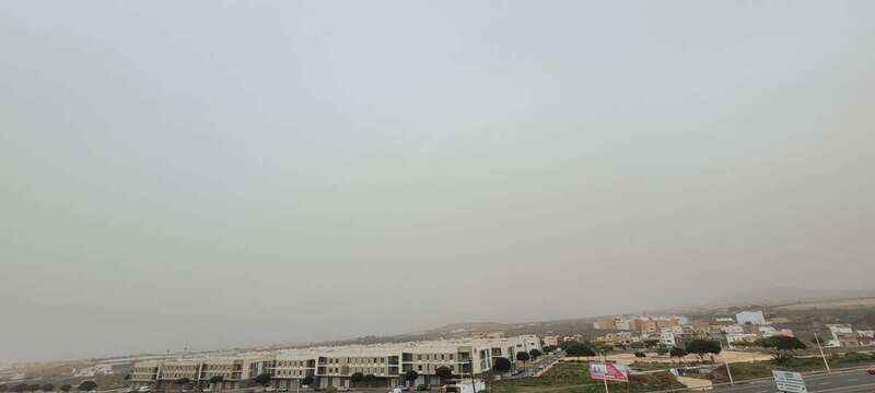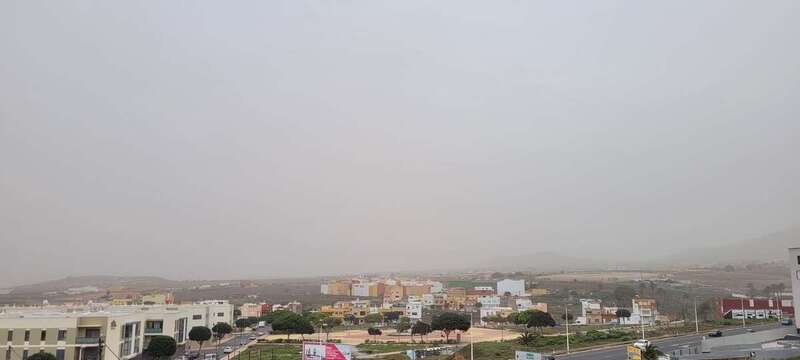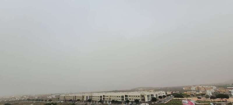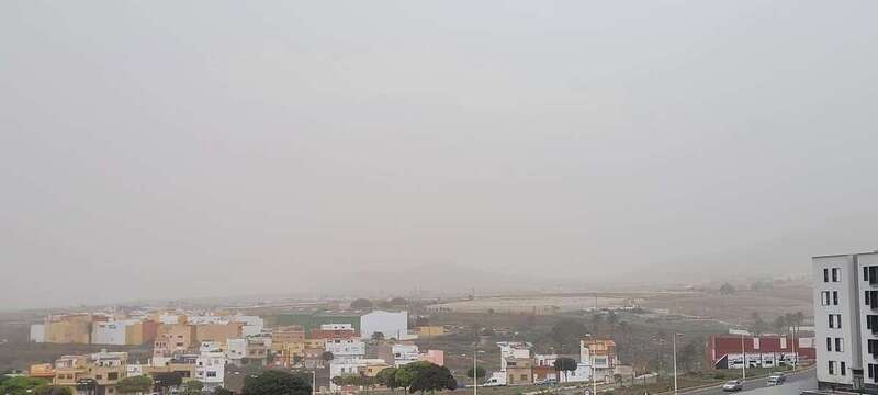 El polvo en suspensión de origen sahariano ha ensombrecido el cielo de Telde en las primeras horas de la tarde este martes.