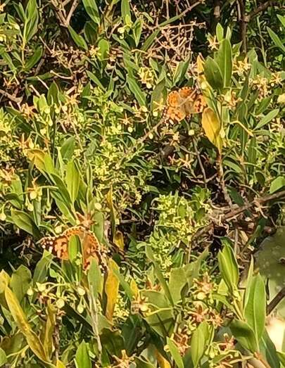 No obstante, como se observa en una de las fotos que adjunto, decenas de Cynthias cardui se encuentran sobre los abundantes cornicales. En flor en el pasado mes de noviembre, cubierto de herbáceas y de verdor arbustivo todo el campo de volcanes de Lomo Magullo, en la ladera de solana revolotean cientos, qué digo cientos, miles de ejemplares de esta mariposa. No hay cornical que no esté cubierto por decenas de ellas. Se trata de una eclosión de este bello lepidóptero como nunca había visto.