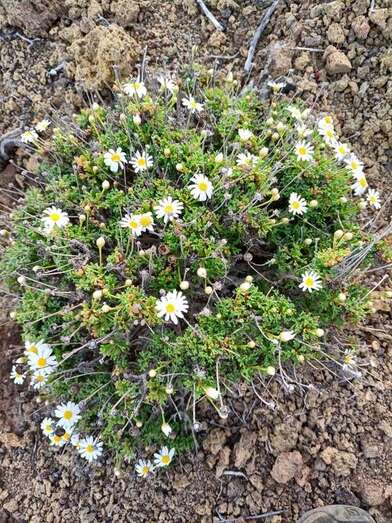 Pero yo bajo la vista y observo la cubierta vegetal de este borde de cráter. Luego la vegetación existente en el fondo del mismo y la ladera que lo rodea. La magarza de costa se presenta con una explosión de vida sin parangón. Tras las primeras lluvias otoñales pequeñas plántulas de esta especie surgieron por doquier. No tengo duda de que es esta la población de magarzas de costa más amplia y mejor conservada del tan esquilmado mapa botánico de la geografía del litoral teldense. Si deambulamos por los restos del cono volcánico, a las magarzas se le unen inciensos, salvias, tabaibas amargas, cornicales, balillos, tabaibas dulces…