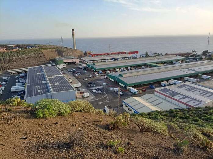 Es de destacar -ahora que parece que hay que pasar de las energías convencionales derivadas del consumo de petróleo a las renovables a una velocidad de vértigo, sin tiempo para analizar con serenidad y prudencia los daños asociados a la ocupación masiva de amplios territorios agrícolas y conos volcánicos de la vertiente este de la isla-, que sobre muchas de las cubiertas de las naves que observo, se encuentra instalada una cantidad nada desdeñable de paneles solares. Sólo sobre una de las naves de este complejo agroalimentario, contabilizo algo más de un millar de paneles.