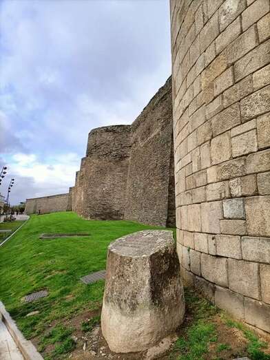 Nos encontramos en el interior de la muralla. Incrustadas en el pavimento empedrado de idéntico material pétreo, destacan las conchas en bronce que, doradas y desgastadas por las pisadas de los lucenses y de tanto calzado peregrino nos conducirán, atravesando la ciudad sin pérdida posible, hasta su salida.