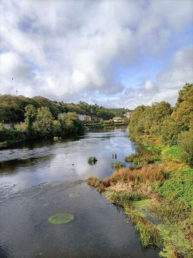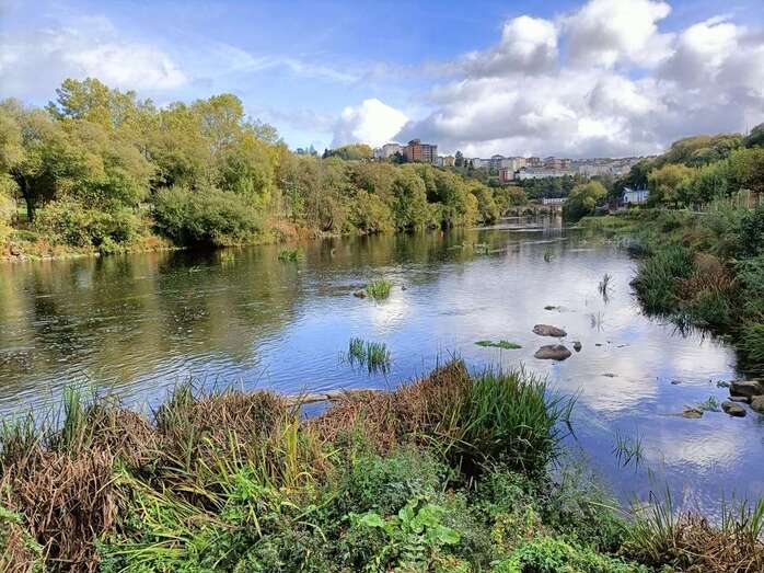 El río está vivo, vivo y limpio. Buena prueba es la presencia de ánades reales en todo su recorrido, de cormoranes que discurren de lado a lado del puente con sus vuelos cortos, de garzas reales que aprovechan las zonas menos profundas para procurarse su alimento de ranas y peces, de lavanderas blancas, de mirlos acuáticos, del escurridizo y colorido martín pescador.