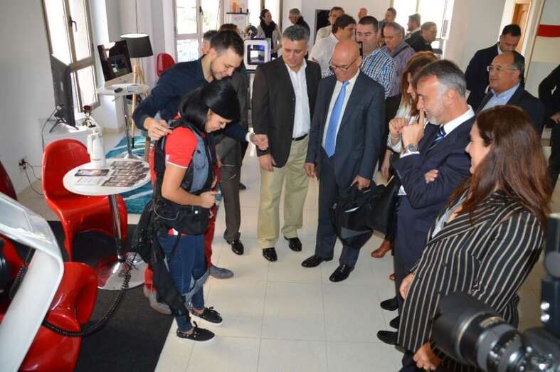 Wellness Emotion, uno de los gimnasios más reputados de la Isla, formó parte del circuito preparado. Triunfó con la exhibición de un entrenador virtual que controla peso y tablas de ejercicios y con un chaleco que, a base de electrodos, pone a funcionar los distintos grupos musculares.