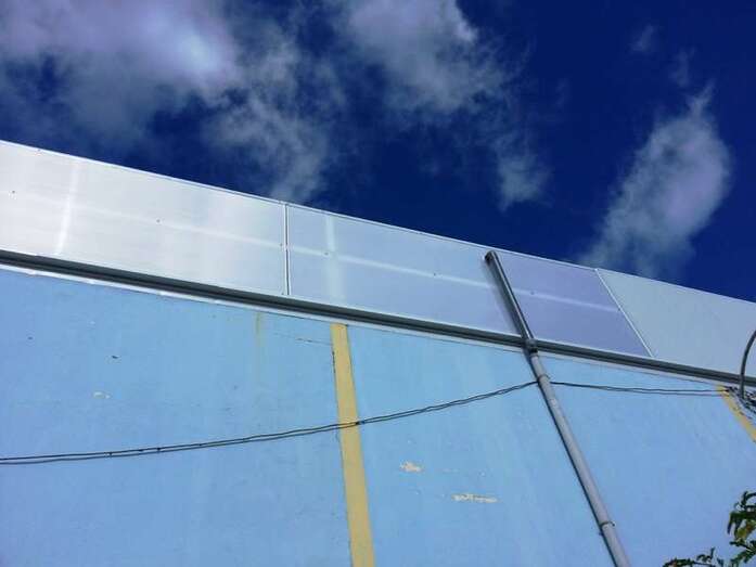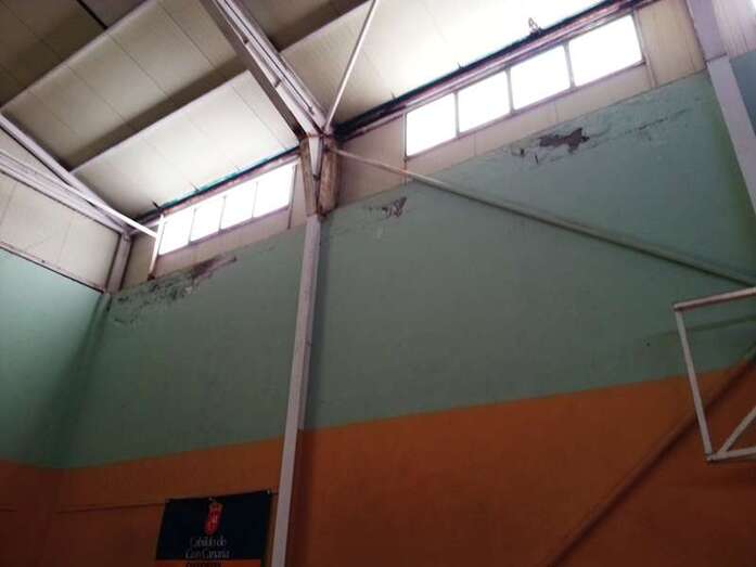 En el pabellón Antonio Moreno, utilizado por el Rocasa Remudas y por el IES Guillermina Brito, anexo al mismo, una de las fachadas protagonizó varios desprendimientos. La caída de 20 metros líneales del muro de cerramiento obligó a una intervención urgente. Se ha tenido que rehabilitar la fachada norte y, aprovechando esta medida, se ha procedido a ubicar una hilera de mamparas translúcidas en su cota superior para facilitar la entrada de luz natural y el consiguiente ahorro energético.