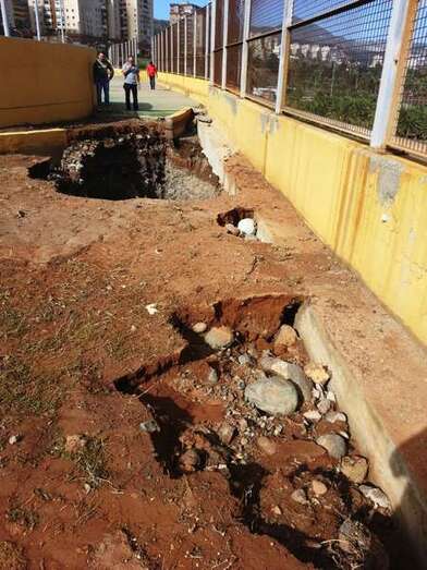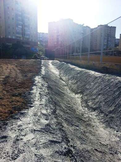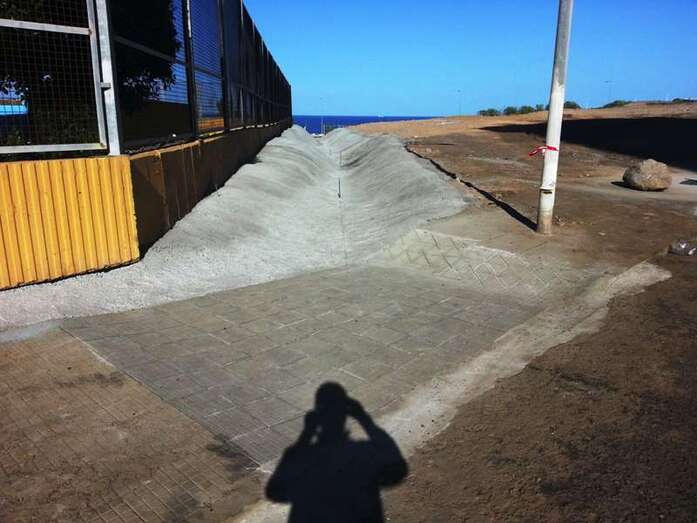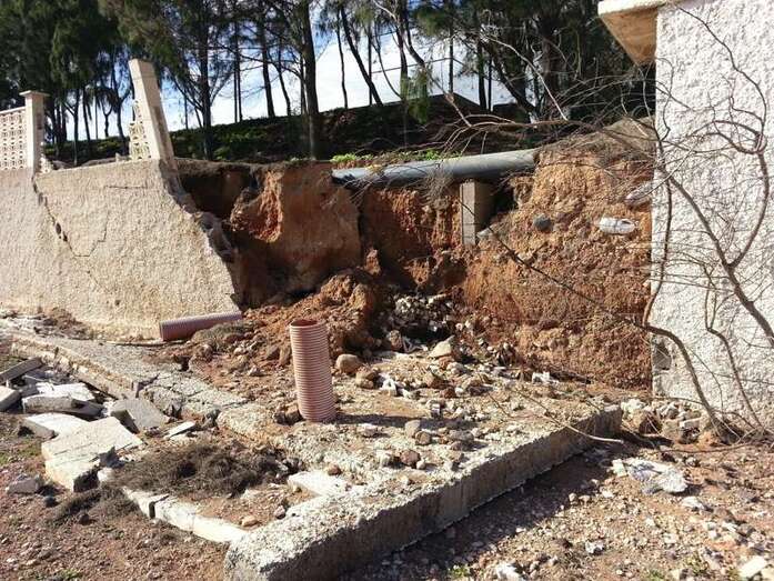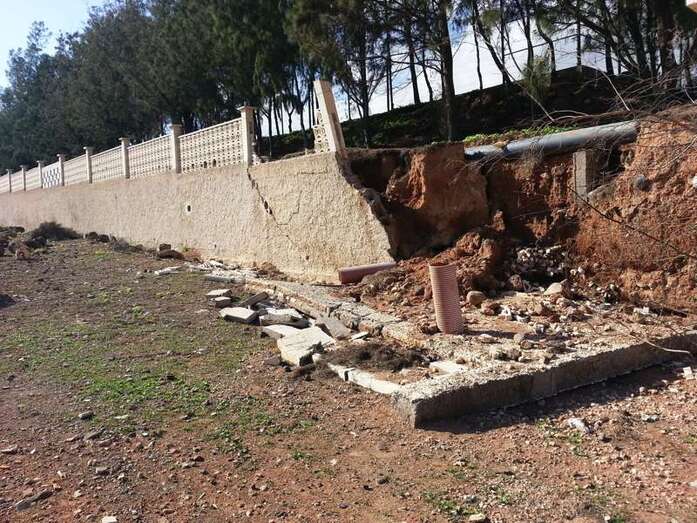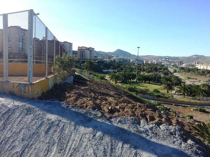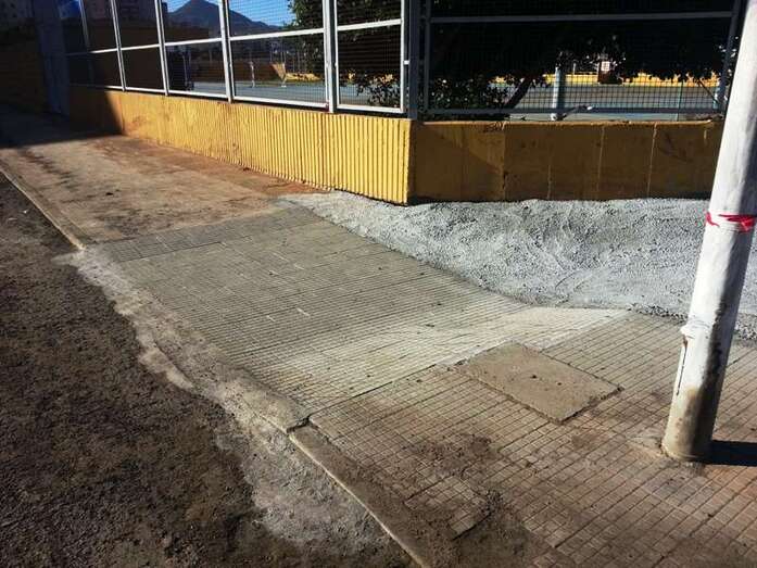 En Las Huesas, por último, una esquina del muro perimetral del campo de fútbol también cedió por la fuerza del agua, por lo que se recurrió de nuevo al hormigón ciclópeo para su reconstrucción.