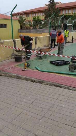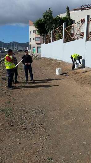 Telde.- El Ayuntamiento de Telde inicio este lunes los trabajos de remozamiento de la cancha deportiva y muros del CEIP Gregorio Chil y Naranjo, en Las Huesas, una actuación coordinada por las áreas de Vías y Obras y Educación que llevan los socialistas Alejandro Ramos y Saraiba Leal.