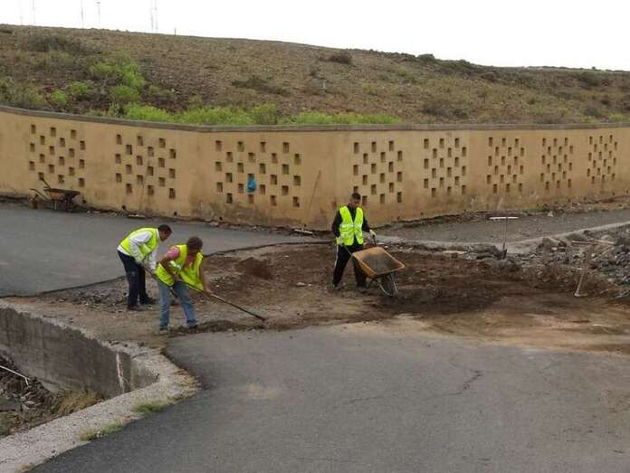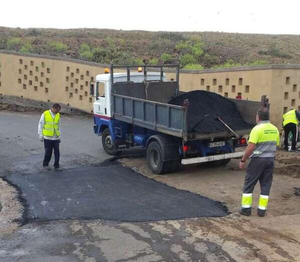 La intervención no consistió en un simple rebacheo porque la fuerte escorrentía del barranco sobrepasó la vía  y se llevó por delante un trozo de la capa asfáltica.