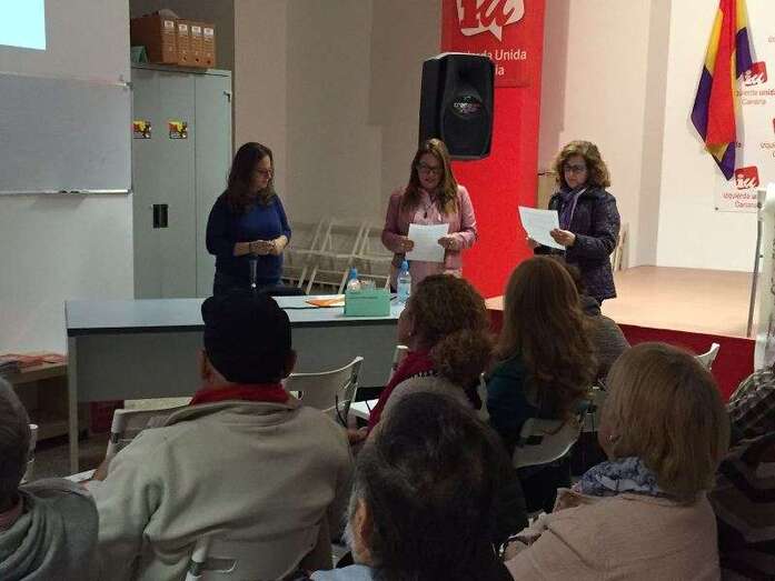 En la conferencia celebrada en el Ateneo Cultural Juan García El Corredera, sito en la sede que IUC posee en la calle de Alférez Quintana Suárez, número 31, se leyó un manifiesto por la celebración y luego la especialista explicó a los asistentes las medidas de actuación frente a las situaciones de acoso que sufren las mujeres en el trabajo para evitar que “este tipo de violencia tenga cabida en un mundo de igualdad”.