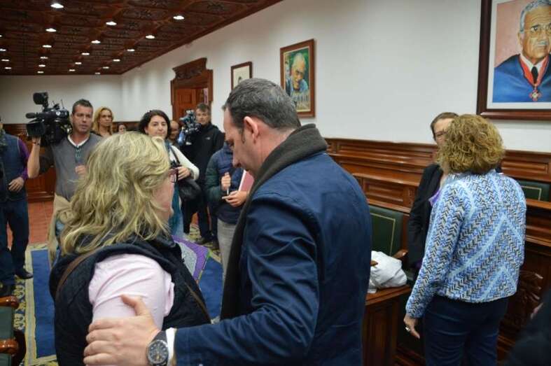 La marcha de Más Por Telde llena de llantos, besos y abrazos el salón de plenos ● Concejales del partido que abandona el gobierno y ediles de NC y PSOE derrochan afecto y sentimiento entre ellos
