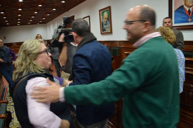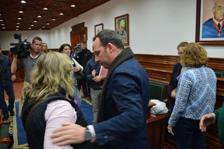 Pocos se imaginaban que el adiós de los ediles iba a estar cargada de semejante dosis de afectividad. El fin de las relaciones políticas entre Carmen Hernández y Juan Francisco Artiles no ha sido precisamente pacífico desde el punto de vista declarativo, pero sus hombres y mujeres de filas han dado otra imagen bien distinta en la sala magna municipal. Los periodistas fueron testigos directo del aprecio, la efusividad y el cariño con el que se despidieron (aunque en realidad se van a seguir viendo en las sesiones mensuales) ediles como Agustín Arencibia (NC) y Álvaro Monzón. También se transmitió ese mismo sentimiento entre varios funcionarios con los que hasta ahora han sido sus responsables político.