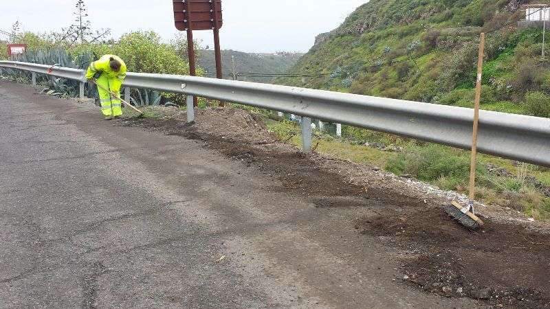 Telde.- Los vecinos del núcleo poblacional de La Gavia asisten estos días a un zafarrancho de operarios y maquinarias en la carretera general GC-803, donde el área de Obras Públicas del Cabildo grancanario acomete trabajos de limpieza de la vía con el uso de tractores y barredoras. TA ofrece reportaje gráfico.