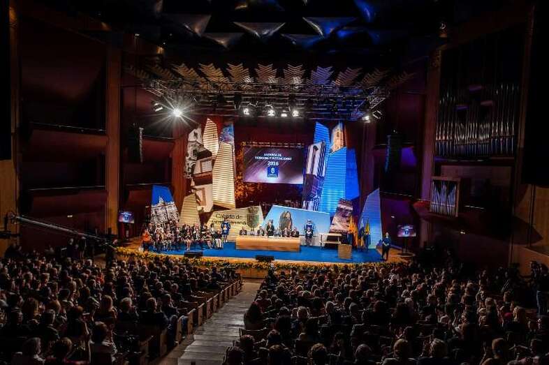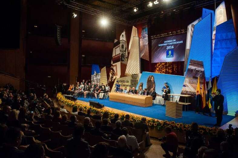 Telde.- El Cabildo de Gran Canaria celebró este viernes el acto de entrega de Honores y Distinciones con motivo de su 103 niversario, una solemne ceremonia que tuvo como marco al Auditorio Alfredo Kraus en la capital grancanaria y en la que, entre los galardonados, figuran el fallecido periodista teldense Adolfo Santana, a título póstumo, y el Club Balonmano Remudas, premios que fueron recogidos por Juan Santana y Antonio Moreno, respectivamente. Al acto asistieron la alcaldesa de Telde, Carmen Hernández, y el concejal de Deportes, Diego Ojeda, así como el cantante José Vélez. TA ofrece imágenes, el discurso del presidente del Cabildo y la relación y semblanza de premiados.