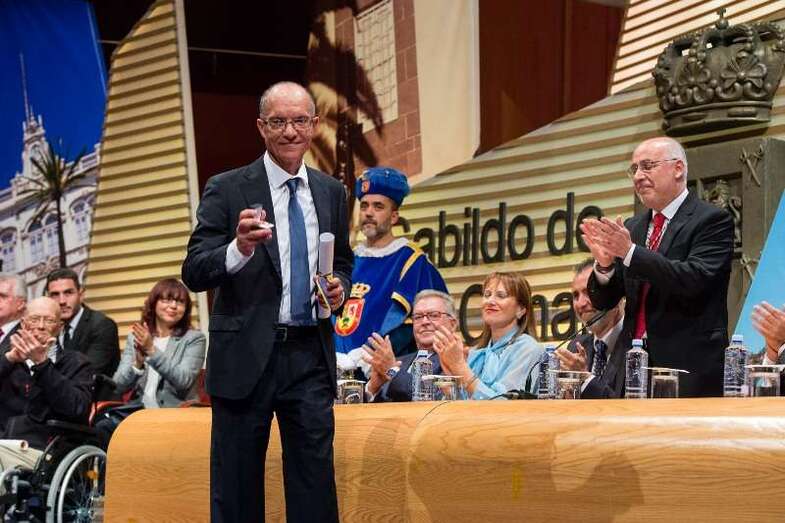 También es una voz que todos entienden y que todos respetan. Esos logros solo los otorga el tiempo y los pasos que cada uno va dando en su propia vida. Nos podemos asomar a su biografía desde diferentes perspectivas, como profesor, como economista, como gestor, como político, como escritor o como articulista, y en cada una de esas miradas encontraremos a alguien reconocible por su talante, por su ética y por esa coherencia que tan poco se estila en estos tiempos. No es alguien que busque protagonismos o que se asome a los focos a todas horas. Son esos focos los que le buscan a él cuando urgen respuestas y razonamientos certeros y sosegados. Por todo ese ejemplo diario y por lo que ha influido en muchos de sus alumnos o colaboradores a la hora de mejorar esta sociedad, el Cabildo de Gran Canaria le reconoce como Hijo Predilecto.