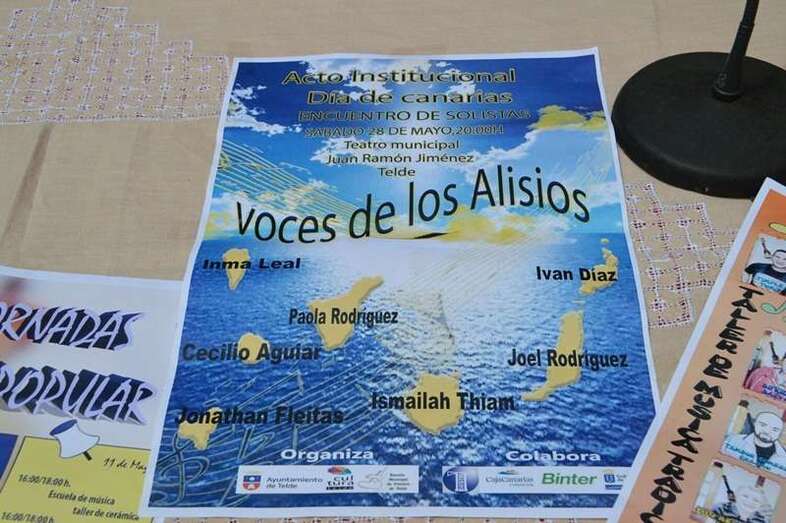 Otro festival diseñado para afinar el oído será el que lleva por nombre Voces de los Alisios y está integrado dentro de la escaleta del acto institucional, fijado para el día 28 en el teatro municipal Juan Ramón Jiménez. En él tomarán parte artistas de todos los rincos, con la siguiente relación de cantantes: Ismailah Thiam (Gran Canaria), Joel Rodríguez (Fuerteventura), Iván Díaz (Lanzarote9, Paola Rodríguez (Tenerife), Inma Leal (La Palma), Cecilio Aguiar (La Gomera) y Jonathan Fleitas (El Hierro).