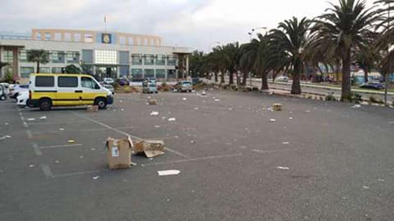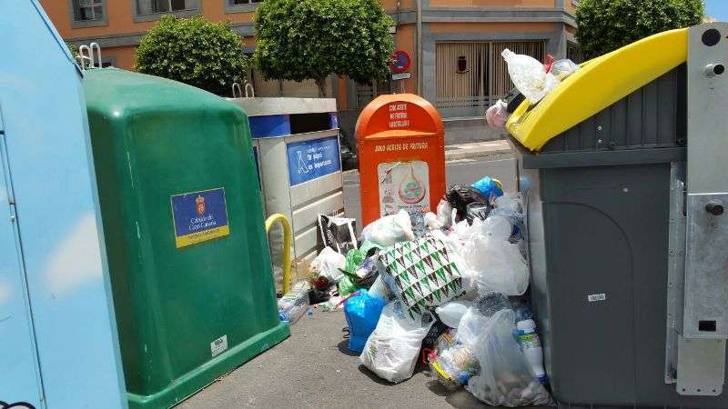 Los recipientes comienzan a estar a tope y los vecinos se ven obligados a dejar las bolsas con basura fuera de los contenedores, una situación que puede complicarse en las próximas horas ya que en la madrugada de este domingo no hubo servicio y tampoco lo habrá en la madrugada de mañana lunes. Fuentes sindicales aseguran que en las calles de Telde se acumulan ya unos 350.000 kilos de residuos.